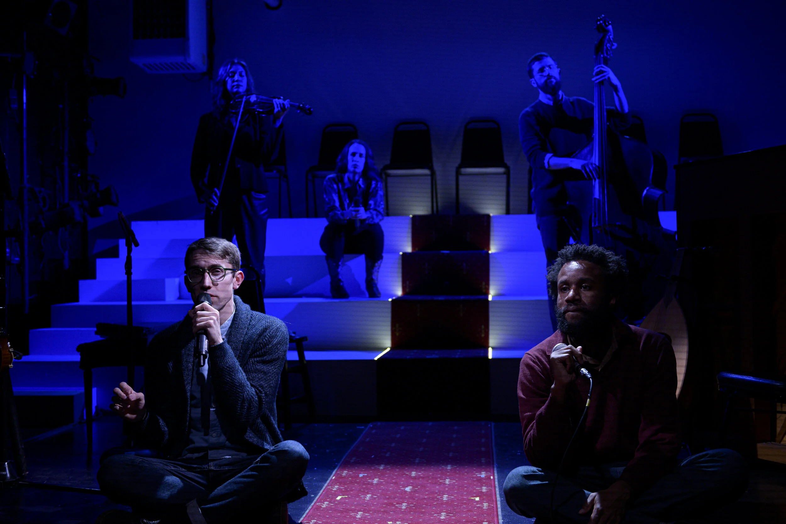 From a performance at The Brick, January 6, 2018. By James and Jerome Media design by Shawn Duan Directed by Rachel Chavkin and Annie Tippe Lighting design by Jeanette Oi-Suk Yew